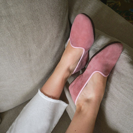 Aussi féminines que confortables, nos ballerines d'intérieur EVA sont dotées d'une semelle en croûte de cuir cousue main en France.