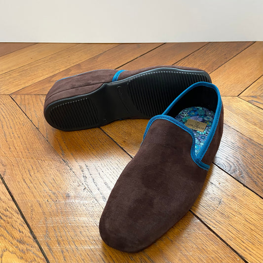 Notre modèle de mocassin d'intérieur se décline en version semelle plastifiée.