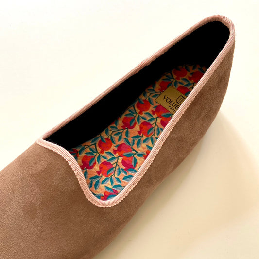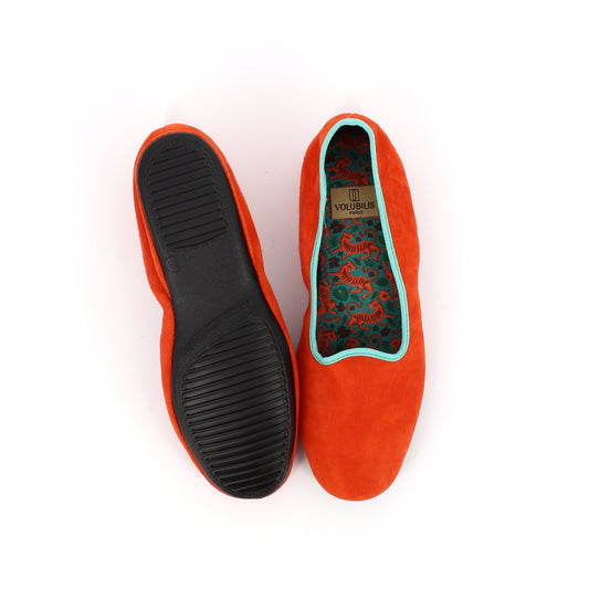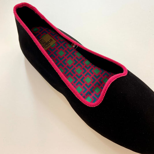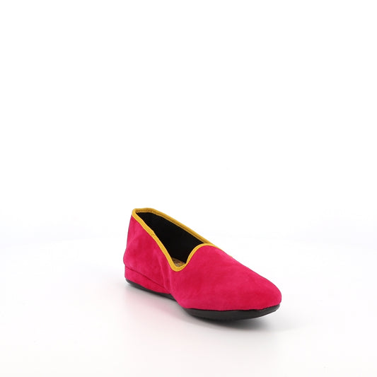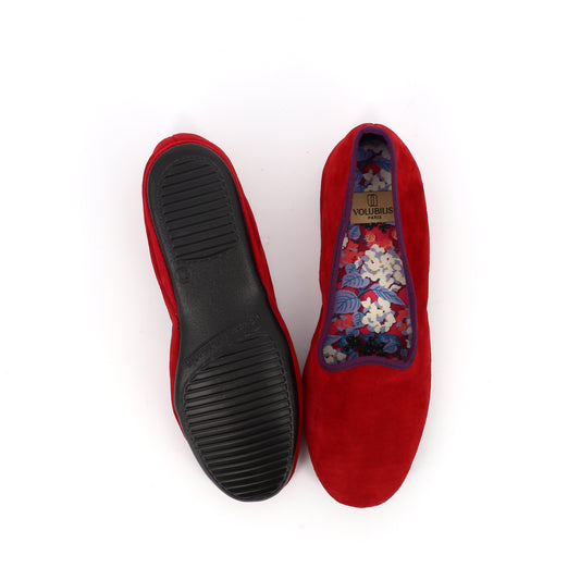 Chaussons pour femme en cuir et semelle plastifiée avec une ligne de ballerine et un confort absolu. Cuir de chèvre velours doublé de coton, cousu main en France.