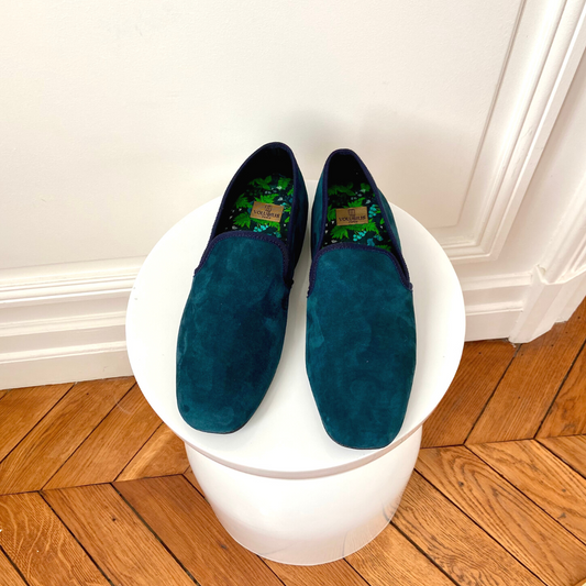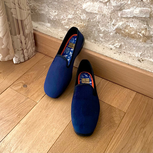 Nos chaussons LEO en velours sont dotés d'une semelle en caoutchouc indoor...